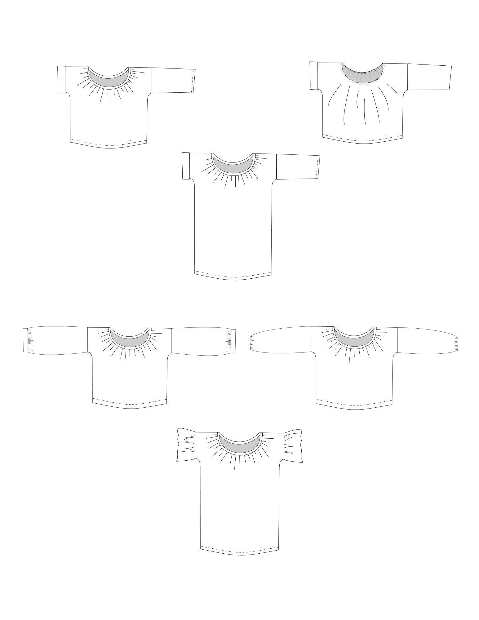 The Photinia is a loose fitting, timeless and versatile top and dress featuring a gathered neckline and various sleeve options. Views 1 & 3 feature short sleeves with cuffs that can be folded up or left as is. Views 2 & 4 feature long sleeves that can be worn in a number of seasons. Both dress versions hit right at the knee and can be tied with optional ties to cinch the waist or left alone for a comfortable and easy look. Dress versions also feature inset pockets.